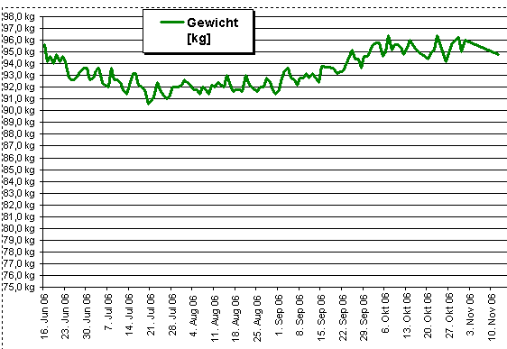 Wenn ich den Hintern nicht hockkriege, wird mein Gewicht bleiben, wie es ist: 94,8 kg.